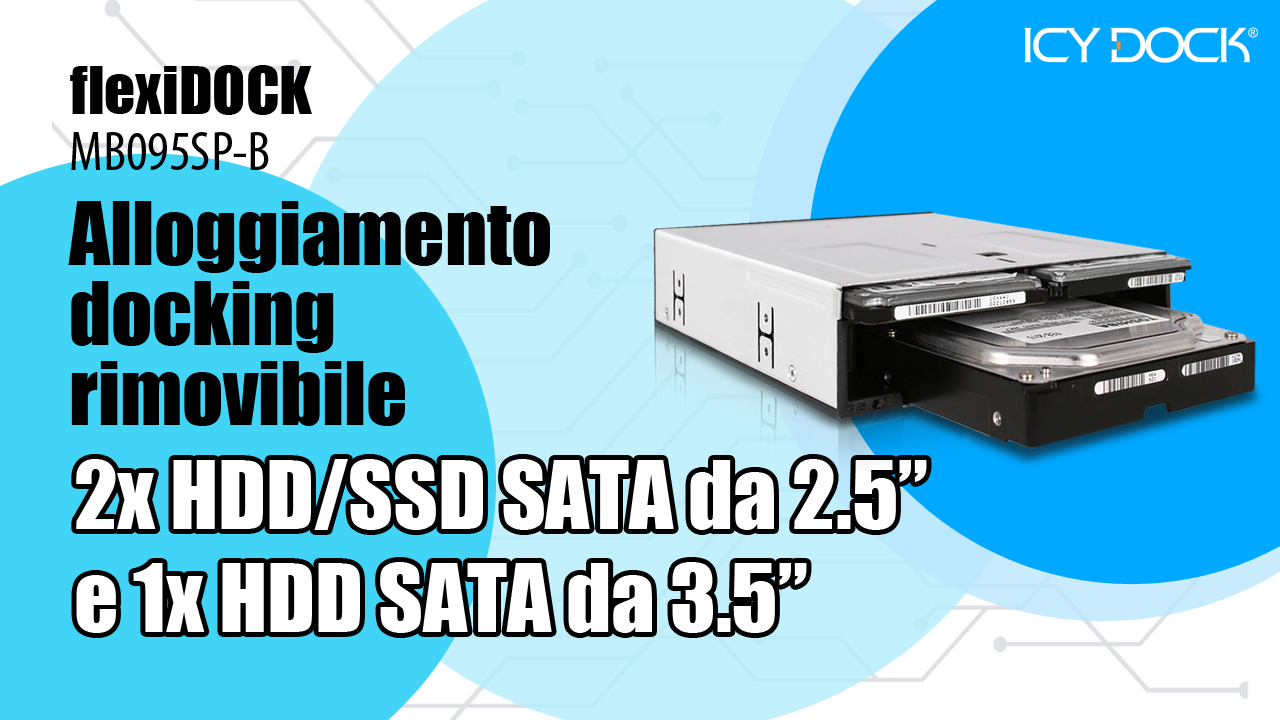 | • | Accoglie 1x HDD SATA da 3,5" e 2x HDD/SSD SATA (fino a 9,5 mm di altezza) |