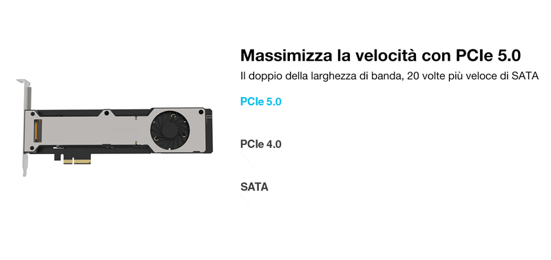 | • | Compatibile con slot PCIe 5.0 x4 / x8 / x16 |