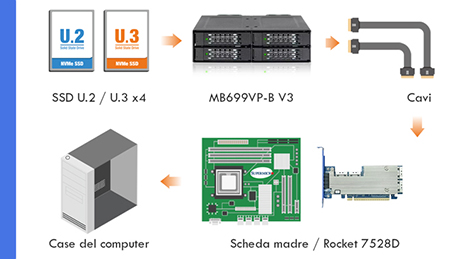 Potenzia lo storage aziendale con un alloggiamento per SSD U.2/U.3 tramite mobile rack PCIe